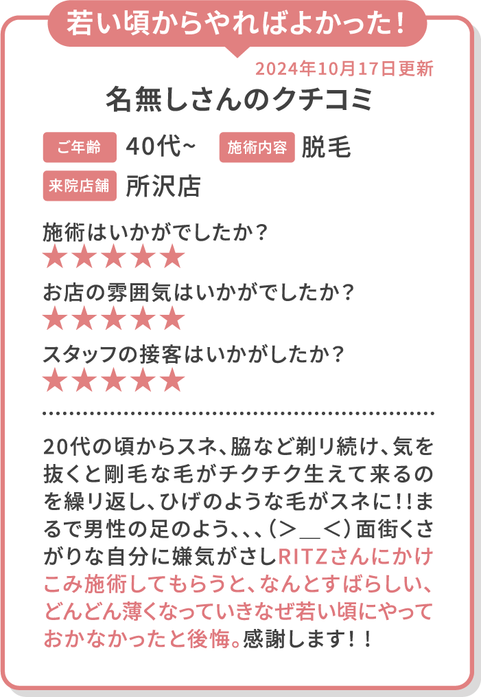 脱毛メニュー